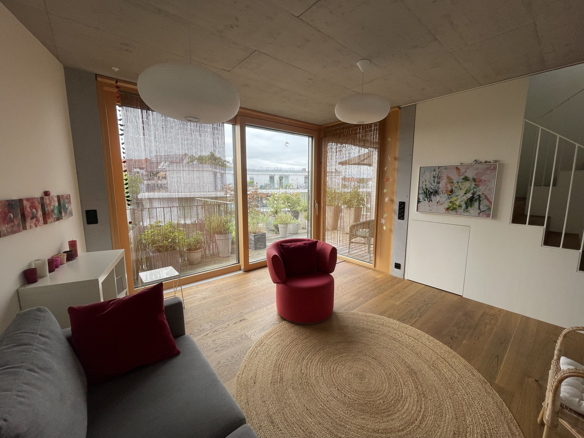 Diese aussergewöhnliche Maisonette-Attika-Wohnung verteilt sich auf die obersten zwei Etagen eines modernen Neubaus (2021) an der Hegenheimerstrasse 27. Mit grosszügigen 93 m² Wohnfläche, 4 grossen Terrassen und viel Privatsphäre, vereint sie urbanes Wohnen mit dem Gefühl eines eigenen Hauses.