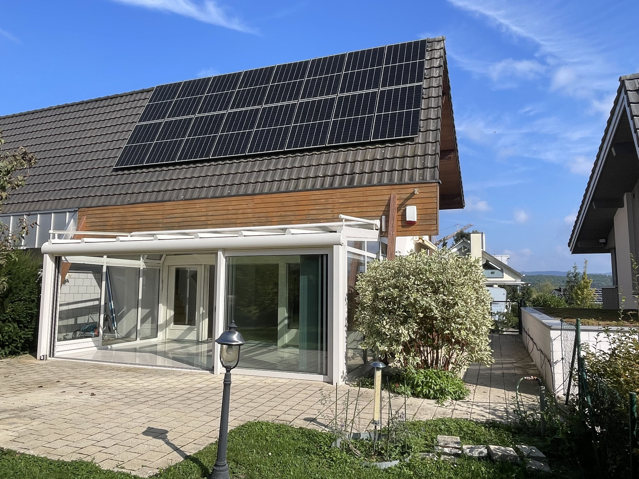 Im Erdgeschoss erwartet Sie ein einladender Wohn- und Essbereich mit direktem Zugang zum Garten und zum Wintergarten. Die moderne Photovoltaikanlage auf dem Dach sorgt für nachhaltige Energie, während die neu installierte Wärmepumpe ein effizientes und umweltfreundliches Heizsystem bietet. Der Garten bietet genügend Platz für Kinder, zum Spielen, Entspannen oder für gesellige Grillabende mit Familie und Freunden.