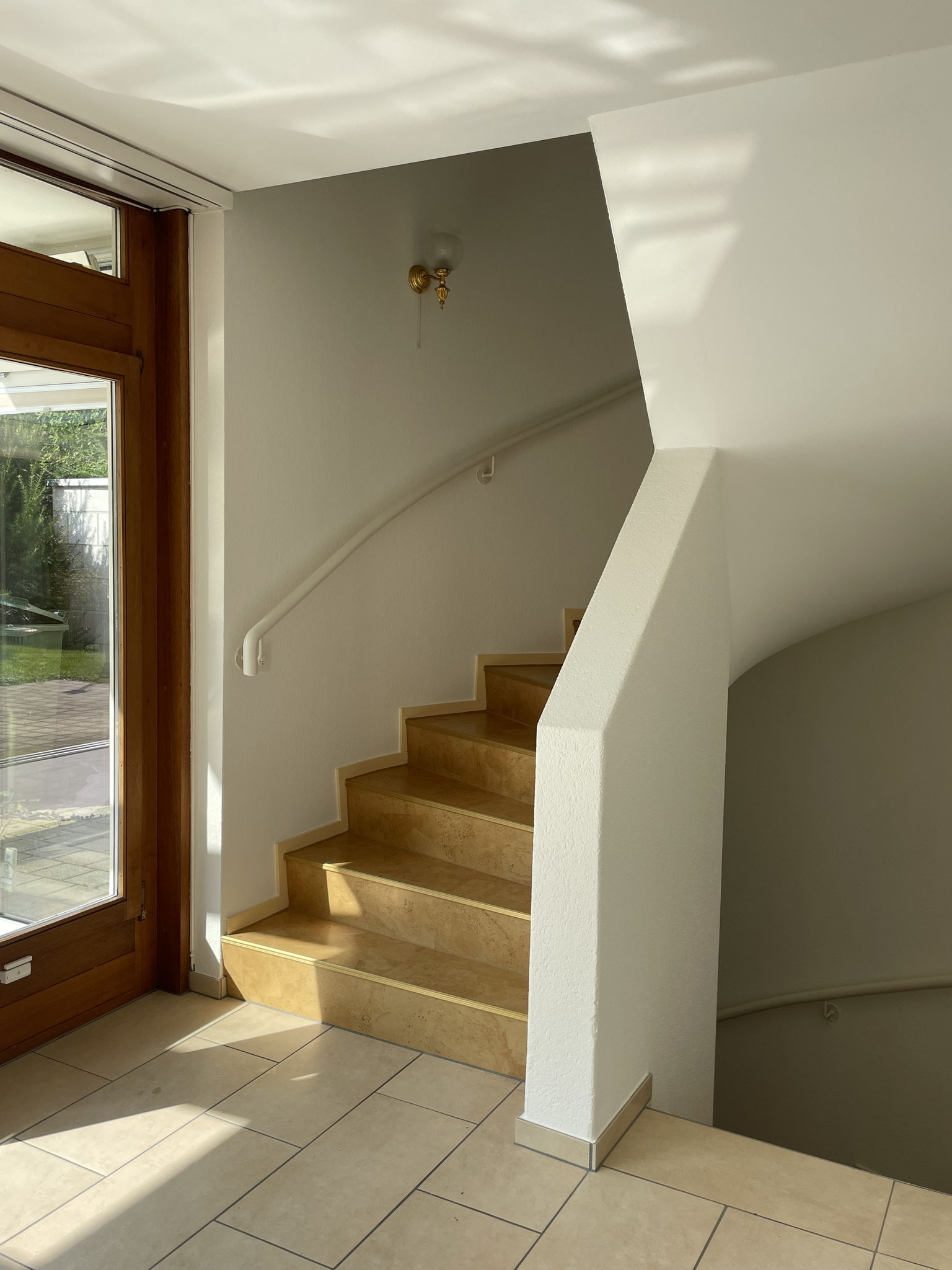 Die Liegenschaft überzeugt durch ihre helle, sonnige Lage - ideal für Familien, die Wert auf Ruhe, Privatsphäre und eine naturnahe Umgebung legen. Spazierwege, Felder und Wiesen befinden sich in unmittelbarer Nähe. Die Bushaltestelle der Linie 60 liegt nur wenige Schritte entfernt. Mit dem Bus erreichen Sie das Zentrum von Oberwil, wo Sie auf das Tram Nr. 10 umsteigen und so in total 25 Minuten in der Basler Innenstadt sind.